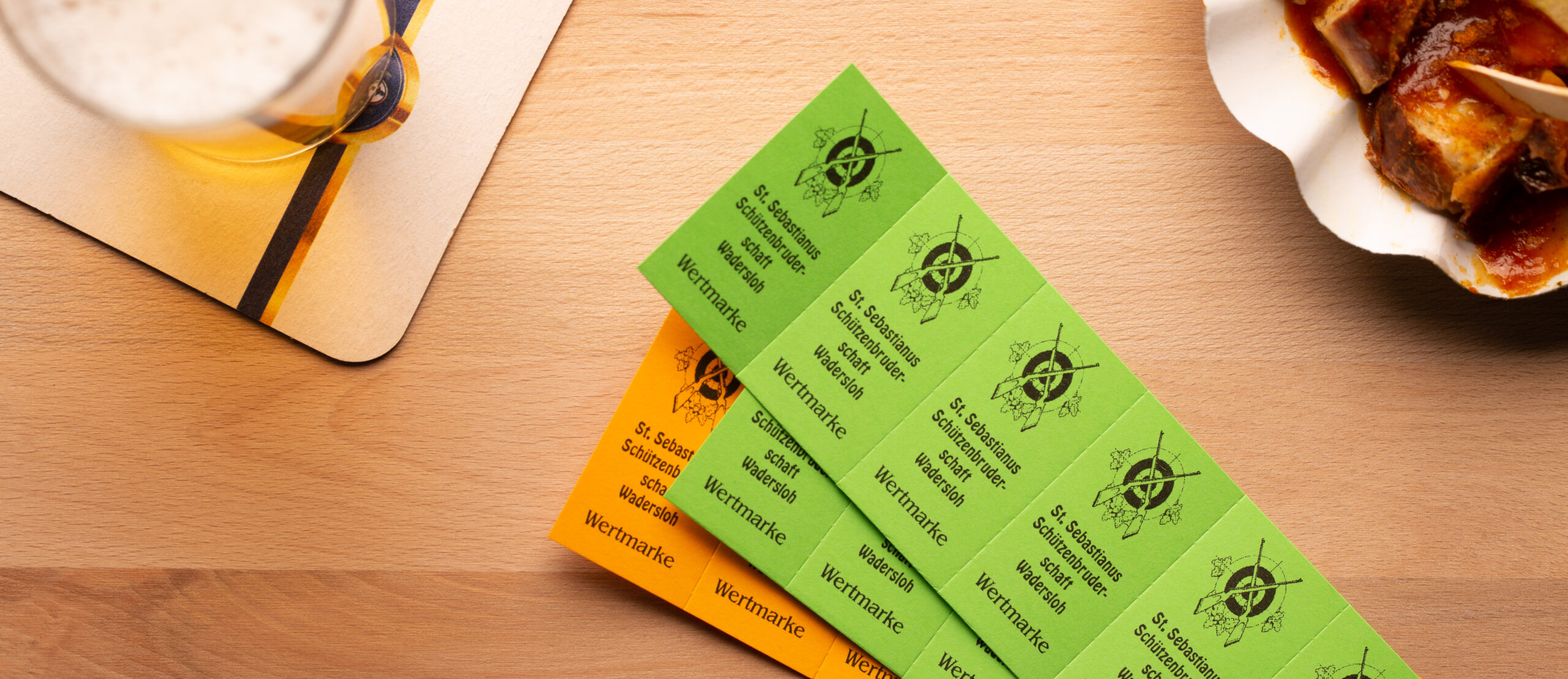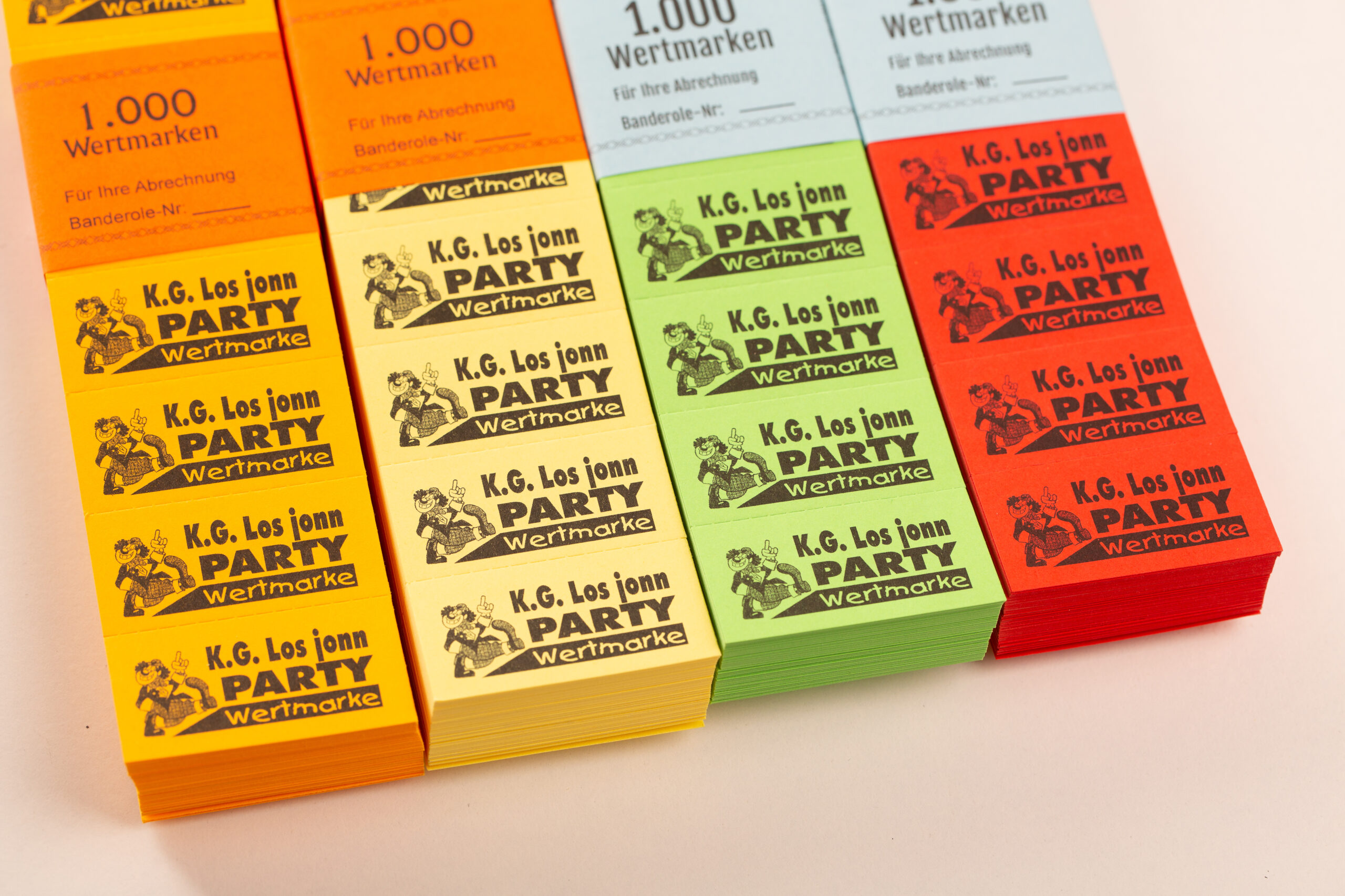 Wir drucken Individuelle Wertmarken als Essensmarken, Getränkemarken, Biermarken oder Verzehrbons schnell und unkompliziert. Egal ob Sie Wertmarken für ihr anstehendes Sommerfest, Schützenfest oder Hoffest brauchen bei uns befinden Sie sich an der richtigen Adresse, auch wenn es mal schnell gehen muss.